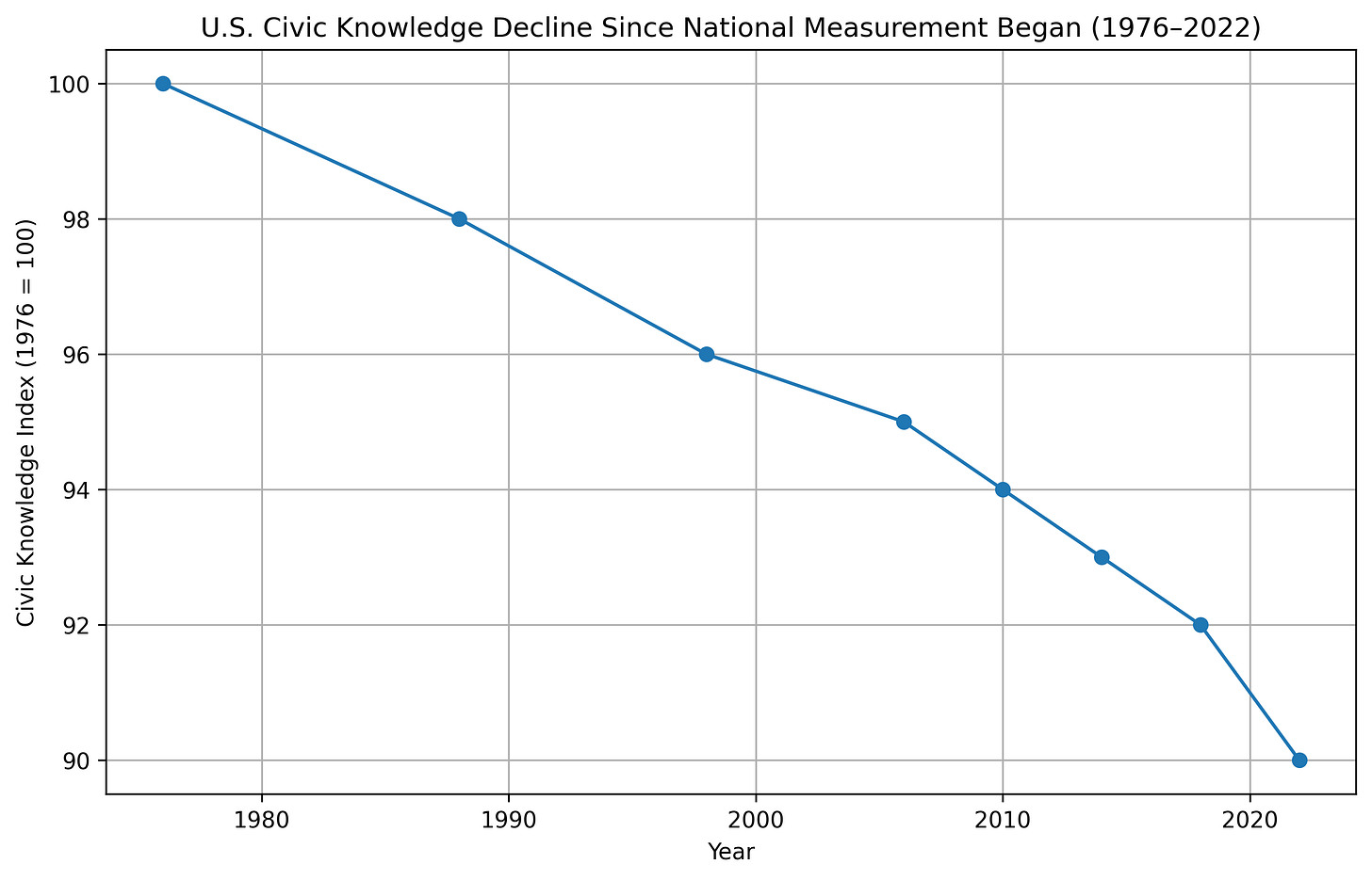 We have mountains of evidence that what has collapsed is not intelligence, but knowledge. The National Assessment of Educational Progress has shown for years that civics and U.S. history understanding is weak, and in key areas it has declined. In 2022, eighth grade U.S. history scores dropped five points from 2018, and civics dropped two points.