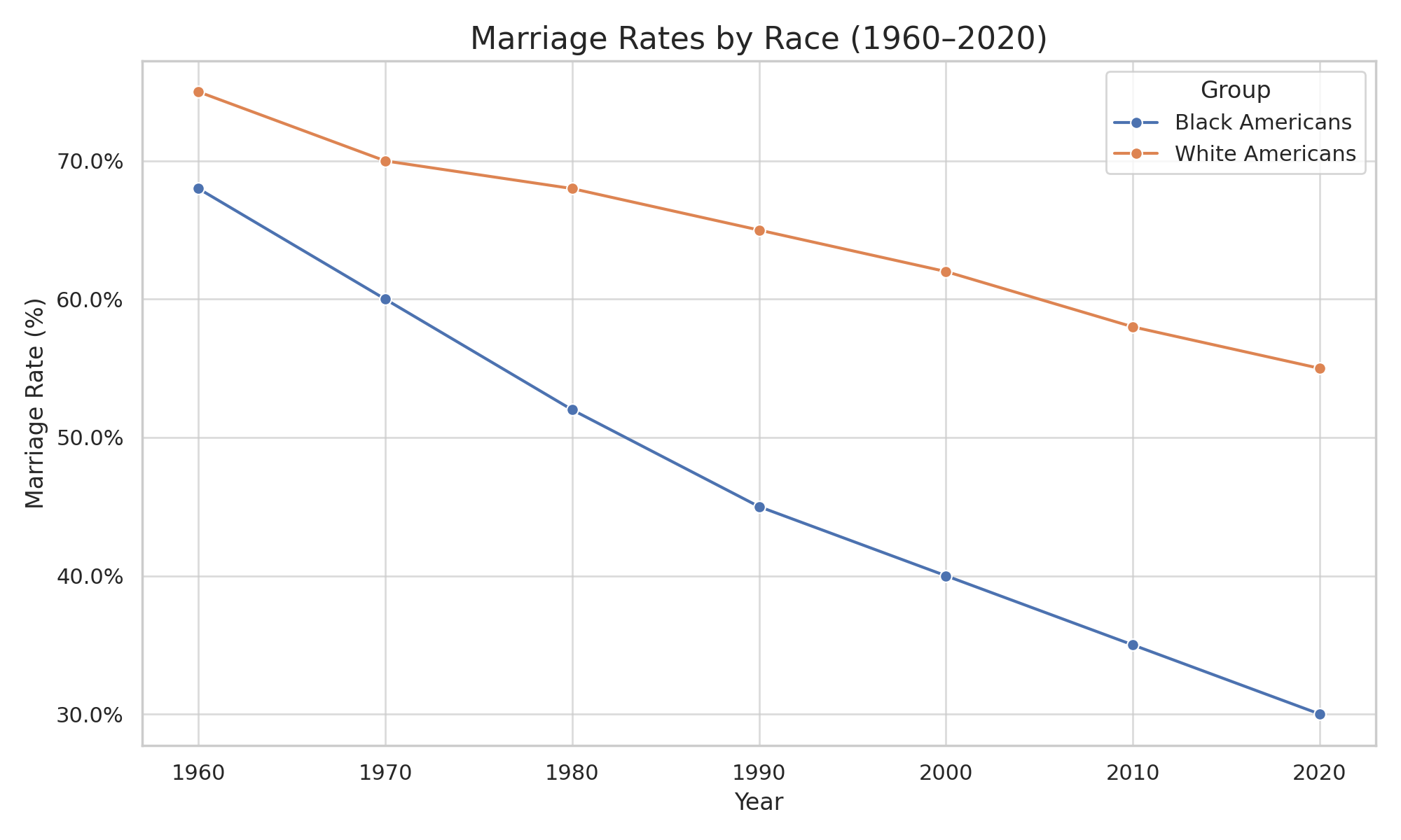 Perhaps the most devastating trait of ghetto culture is its normalization of fatherless homes. Prior to the welfare state, Black families had high rates of two-parent households. In 1930, 75 percent of Black children were raised in homes with both parents. By contrast, today more than 70 percent of Black children are born out of wedlock. This reversal coincides not with slavery, but with modern welfare policy and the rise of cultural excuses for behavior once universally regarded as shameful.