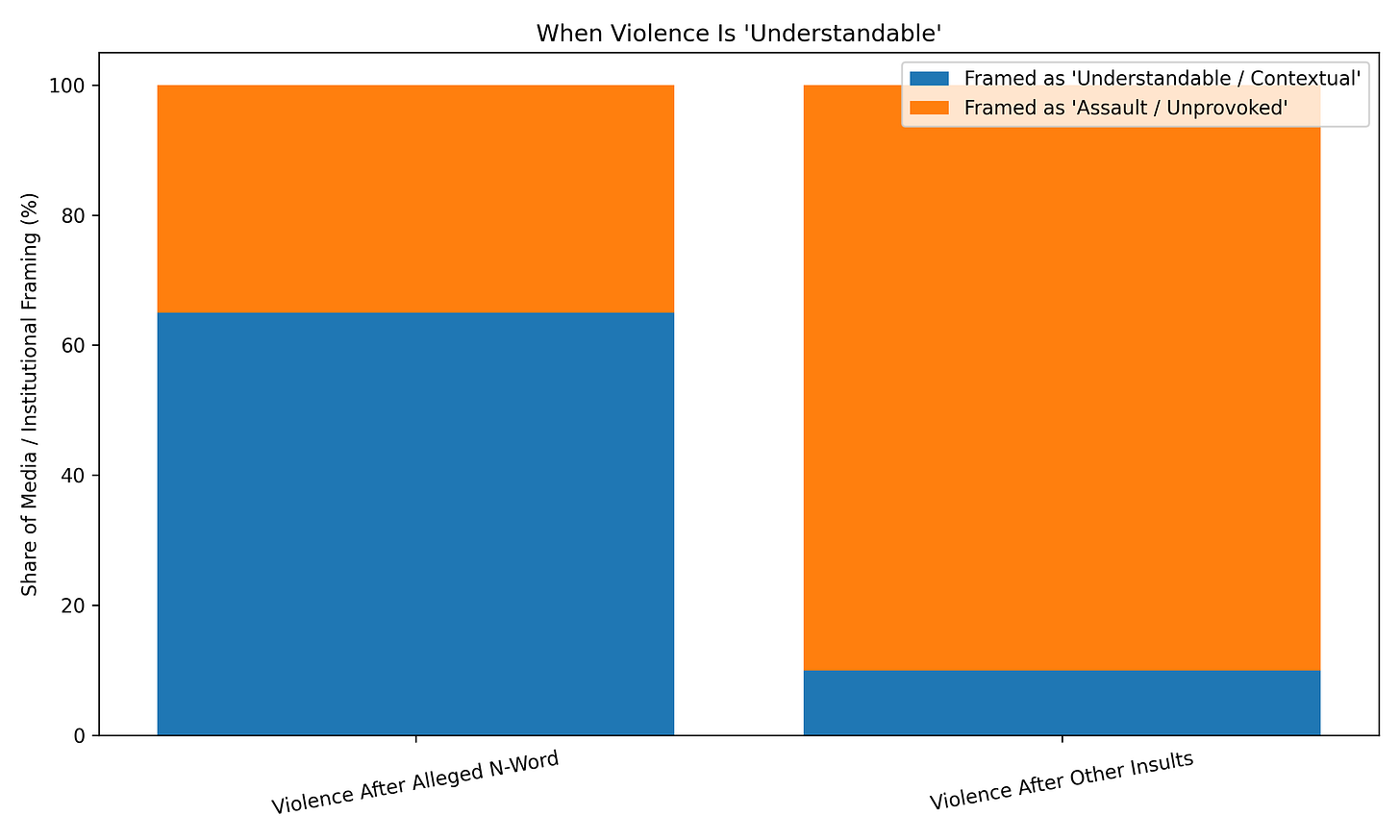 In moral philosophy, there is an ancient idea that human beings are accountable for their actions, even when provoked. But in today’s America, that principle collapses whenever certain emotional triggers appear, especially this one. The person who throws the first punch isn’t blamed; the person who supposedly said the forbidden word is. Emotional reaction outweighs moral agency.