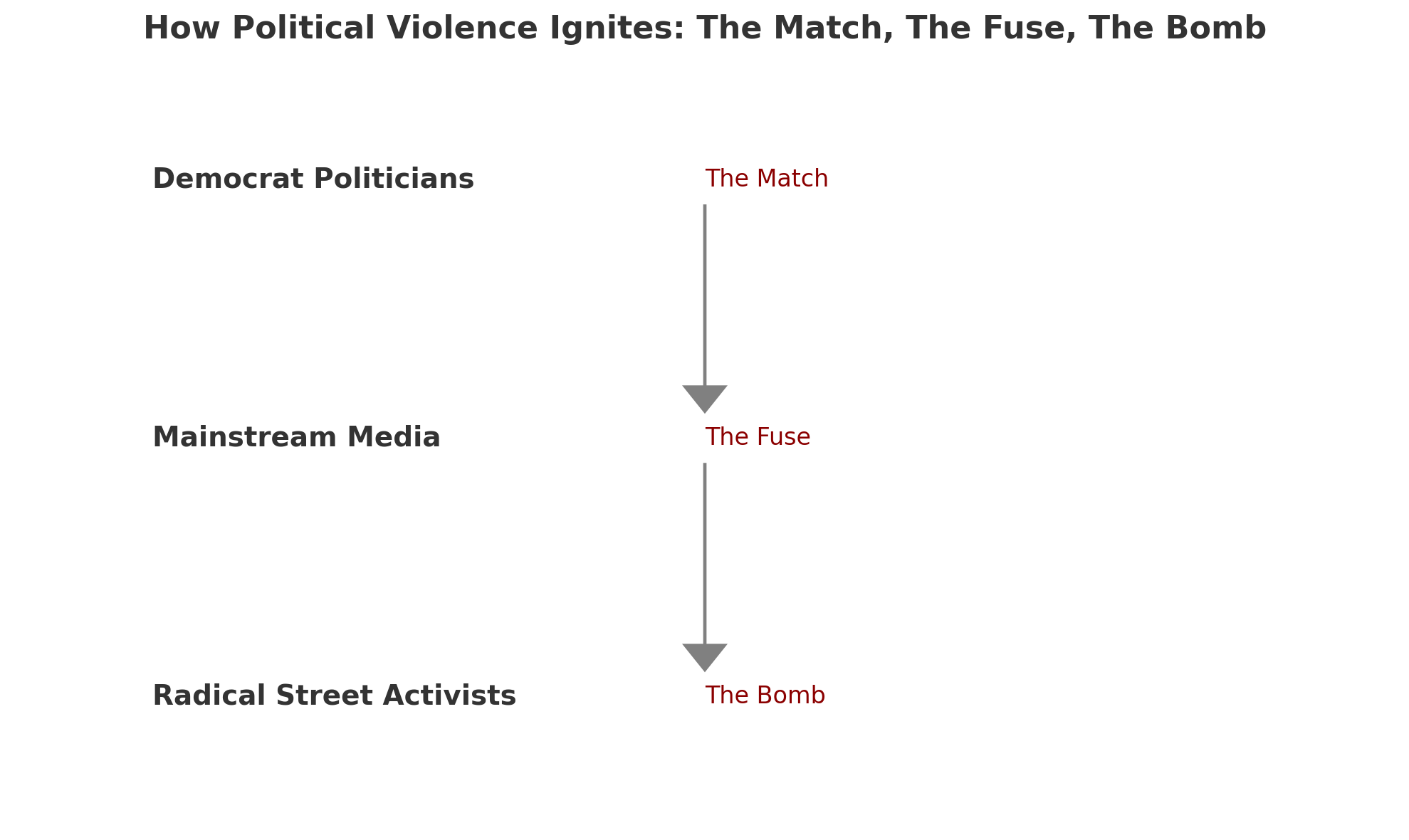 They take that flame and run it straight to the powder keg. MSNBC, CNN, and the editorial boards of major newspapers parrot the talking points of elected Democrats, then amplify them. They don’t frame political disagreements as debates. They frame them as moral emergencies.
