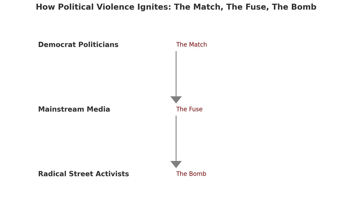 They strike first. They light the flame with rhetoric designed not to persuade but to provoke. Maxine Waters told people to "create a crowd" and "push back" on Trump officials in public. Chuck Schumer warned Supreme Court justices they would “pay the price.” Kamala Harris promoted a bail fund that freed violent rioters. Ayanna Pressley called for “unrest in the streets.” Cory Booker told activists to “get up in the face” of Congress members.