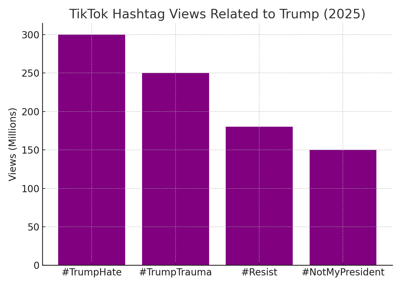 The numbers back it up. A media analysis conducted in the first 100 days of Trump’s second term showed that MSNBC and CNN combined mentioned his name more than 42,000 times. On TikTok, videos tagged “TrumpHate” or “TrumpTrauma” surpassed 300 million views. Professors at more than a dozen universities launched new courses dedicated to “fascism in modern America,” all of which centered on Trump rather than any meaningful historical parallel.