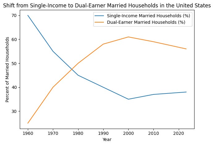 At first glance, the development appeared to promise greater prosperity for households. If two adults in a family earned incomes instead of one, many assumed living standards would rise accordingly.