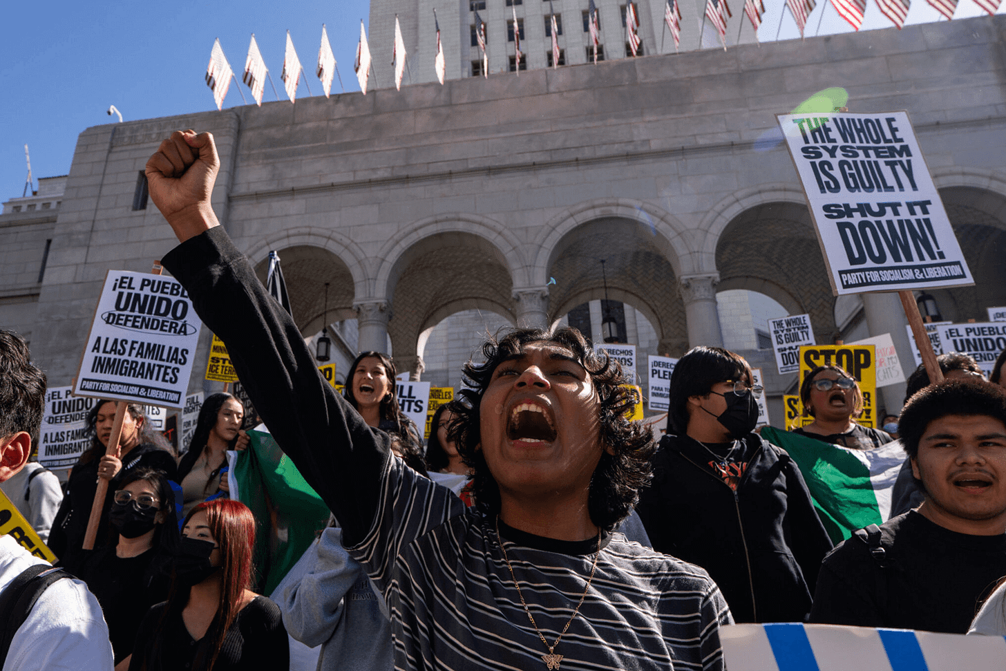 The same phrases appear on signs. The same demands are repeated. The same structure is followed from city to city.