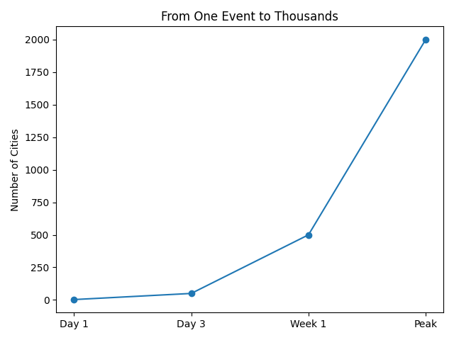 This pattern has been visible in several recent events. During the protests that followed the death of George Floyd in 2020, demonstrations occurred in more than two thousand cities and towns across the United States, according to data compiled by the Armed Conflict Location and Event Data Project. Many of those locations had no direct connection to Minneapolis, yet the messaging and structure were strikingly similar.