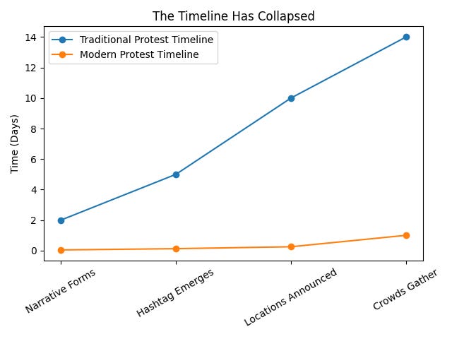 Yet modern protest activity often unfolds within twenty-four hours.