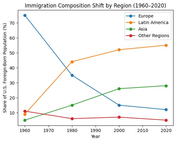 The data show that the share of immigrants from regions with lower historical averages of educational attainment has increased substantially. In 1960, about 75 percent of our foreign-born population came from Europe, where the industrial and intellectual traditions were most similar to our own. By 2026, that number has dropped to roughly 12 percent. Meanwhile, more than half of our current immigrant population comes from Latin America and a growing portion from other regions where the educational infrastructure is often in shambles. This is not a comment on the “worth” of these individuals as human beings, but rather on the “competence” of a nation in maintaining a high-tech, complex society. If you are importing millions of people who struggle with literacy in their own language, let alone English, you are not building a stronger nation; you are building a more fragile one.