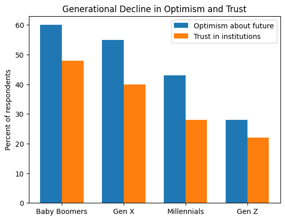 There is a generational dimension that cannot be ignored. Younger adults who entered the workforce after the 2008 financial crisis and then lived through the pandemic disruptions experienced instability as a baseline rather than an exception. Many never saw the period of broad wage growth and affordable housing that earlier generations assumed was normal. When instability is normalized early, expectations adjust downward permanently.