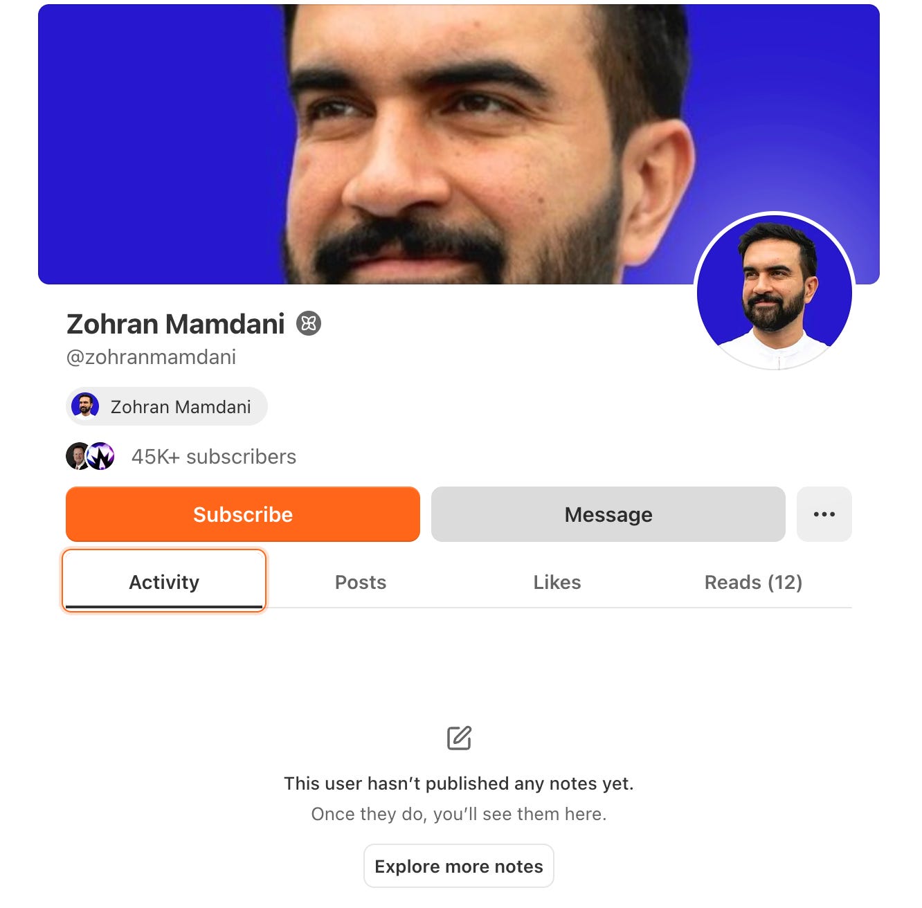 His Substack has more than 45,000 subscribers. That number alone would put him in the top tier of the platform. But he has no posts. No Notes. No visible activity at all.