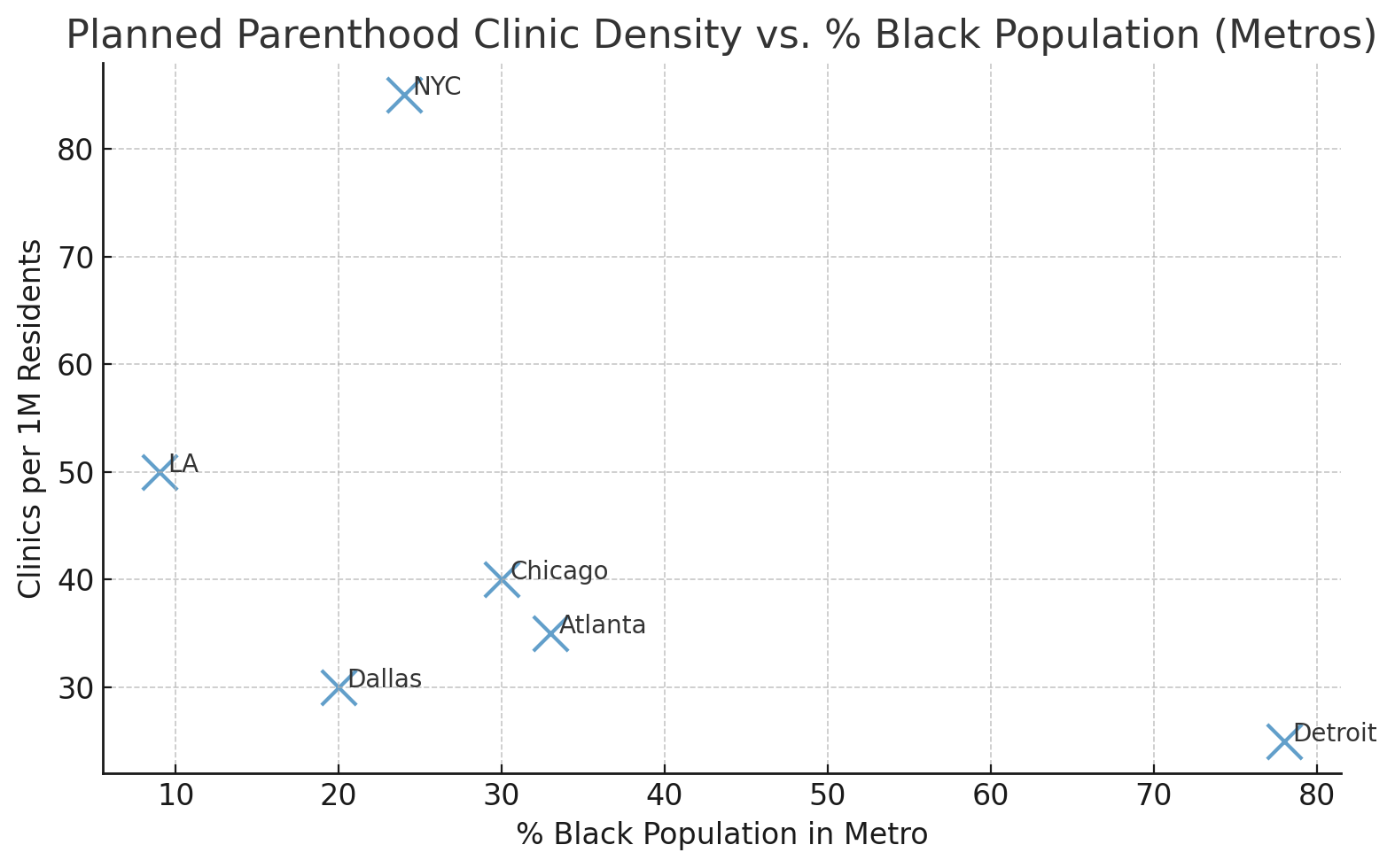More than 70% of Planned Parenthood clinics are in or near Black communities. In cities like New York, Philadelphia, Chicago, and Washington DC, abortion clinics are often concentrated within walking distance of predominantly Black neighborhoods.