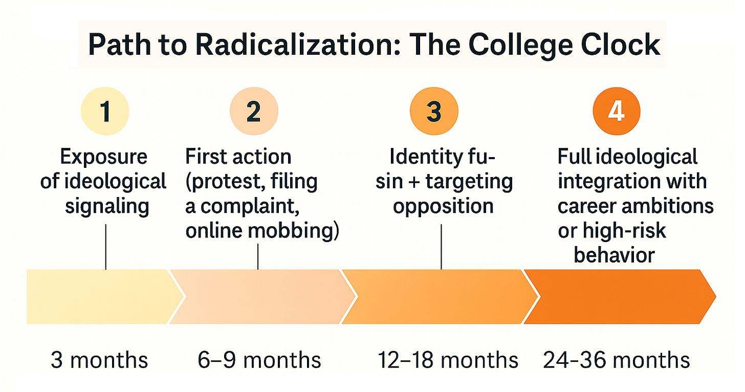 The radicalization of college students is not some unpredictable glitch. It’s a feature of the modern university system, the mainstream media, and the Democrat Party. And it’s time to walk through how it works, how long it takes, and what happens when it isn’t stopped.