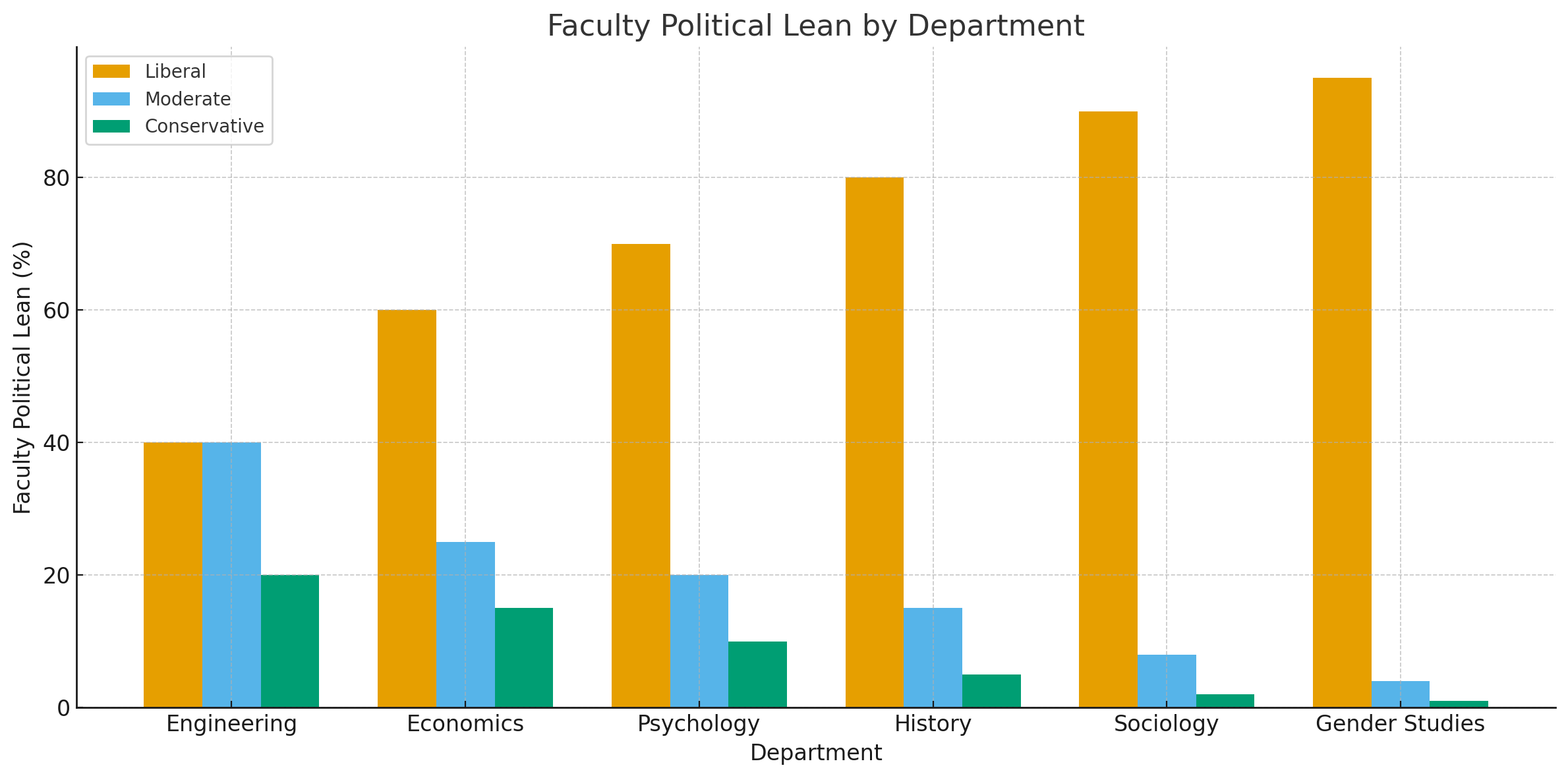 A 2023 survey by the National Association of Scholars found that over 60% of social science faculty at major universities identify as either “far-left” or “liberal.” In fields such as sociology and gender studies, that number rises to over 85%. But the numbers alone don’t capture the culture. Universities are no longer just places where ideas compete; they are incubators where one ideology receives institutional protection, budgetary support, and disciplinary enforcement.