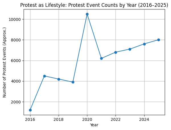 By 2025, protest counts recorded by major trackers were far higher than in 2017. You can argue about what that means, but you cannot argue that it did not happen.