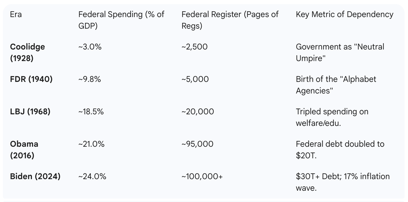 The Soviet Union had collapsed, but domestic central planning hadn’t. It just moved its office from Moscow to Washington, wrapped in red ink instead of red banners. The conservative mirage would continue through Clinton, Bush, and Obama, each chapter proving the same bitter rule: you can’t fix a system that no longer admits it’s broken.